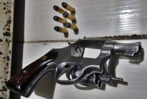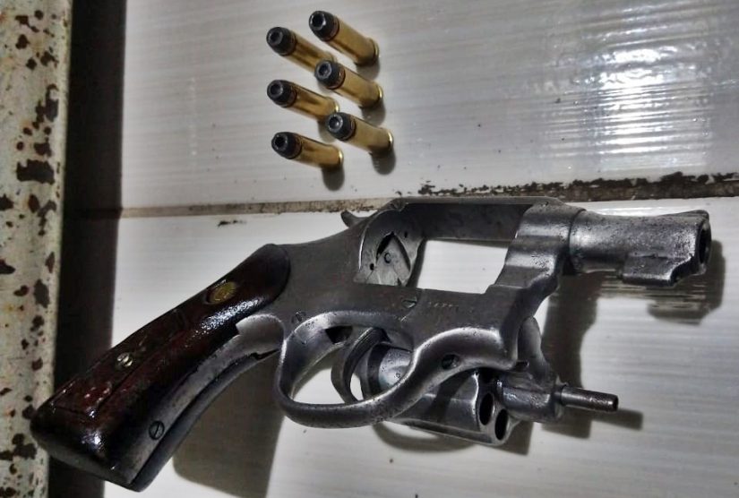 De acordo com o boletim policial, ao descer da moto, um dos ocupantes do veículo – menor de 17 anos – deixou cair no chão a arma que levava na cintura. Um revólver calibre 38 com seis munições intactas foi apreendido.