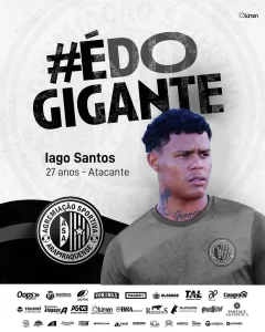 O terceiro nome anunciado foi do atacante Iago Santos, 27 anos, cujo último clube foi o Santa Cruz (PE), na disputa da Série D. O jogador tem um amplo curriculum de conquistas: campeão Potiguar e da Série D pelo América-RN; campeão Paraibano, pelo Campinense (2022); campeão Baiano, pelo Bahia (2019) e bicampeão Sergipano, pelo Confiança (2017 e 2020). Além desses clubes, Iago defendeu Athletico-PR e Náutico.