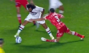 Segundos após a dividida, Marcelo percebeu a gravidade da situação, pediu para a partida parar e ficou ajoelhado no campo. Marcelo também se emocionou por ter machucado o jogador do Argentinos Juniors. Ele foi expulso e saiu de campo desolado por causa da dividida. Sánchez foi atendido também pelo médico tricolor.