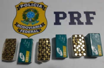 Além disso, após buscas no interior do veículo, foram encontradas 150 munições de calibre 22 no porta-luvas. O condutor, que já tinha um mandado de prisão em aberto em seu desfavor, assumiu a propriedade do ilícito.