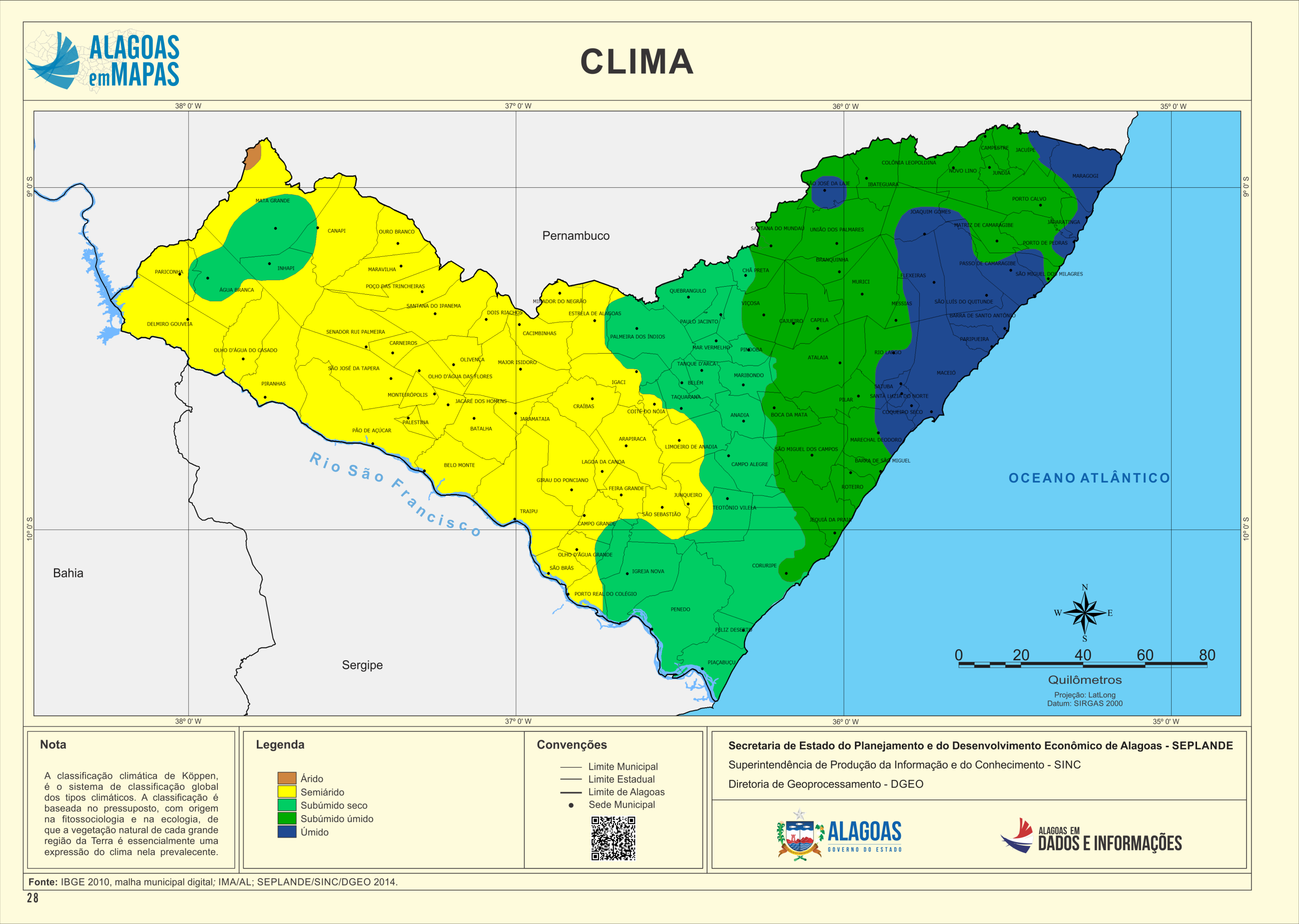 Conforme o Inmet, foram emitidos dois alertas: um na cor amarela, que deve atingir 48 municípios alagoanos e outro na cor laranja, que deve atingir 47 cidades.
