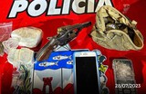 Após busca pessoal, foi localizada com o indivíduo uma certa quantidade de substância análoga a cocaína. “Ele foi indagado se havia mais drogas e onde estaria a arma de fogo, momento em que respondeu que teria escondido a arma no lixeiro do banheiro do posto, juntamente com alguns outros matérias”, informou a polícia.