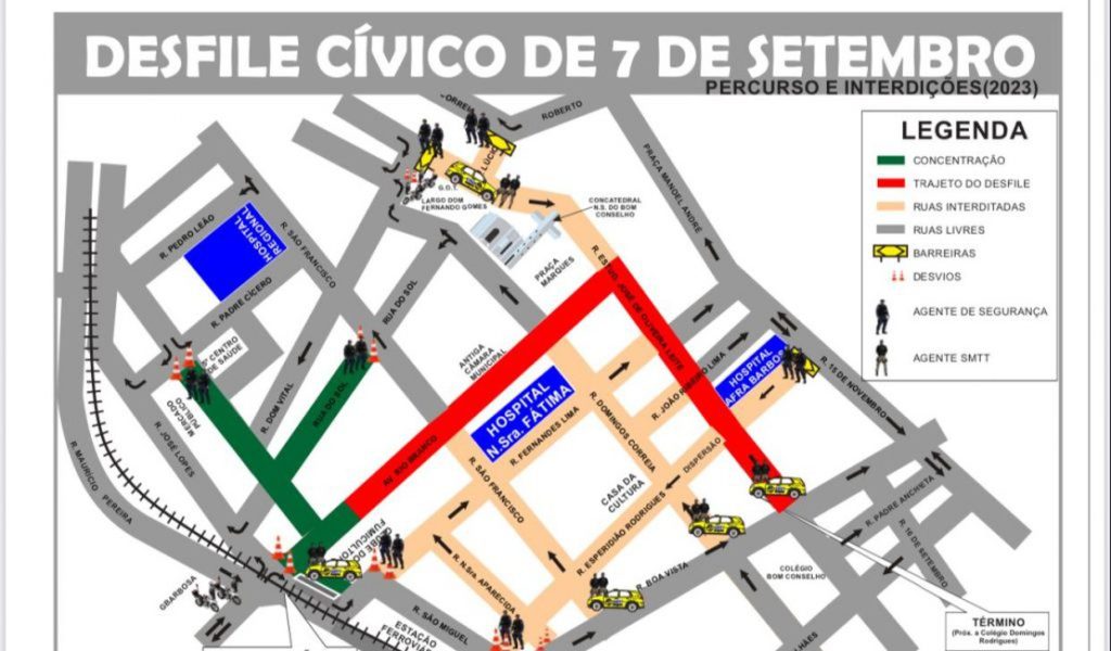 “O trabalho antecipado tem como objetivo bloquear o acesso às ruas que fazem parte do corredor do desfile para evitar transtornos. A gente solicita que os condutores compreendam o momento festivo e obedeçam as instruções para o sete de setembro ser marcado pela segurança no trânsito, mais uma vez”, afirmou Ailton.